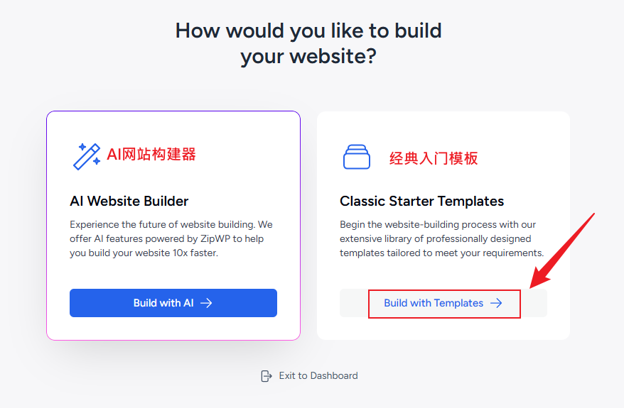 安装成功会自动转跳到Starter Templates插件的向导页面,这里会询问你想如何搭建网站。我们选择经典入门模板。