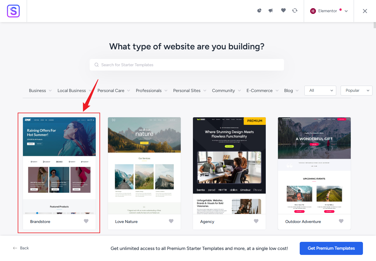2. 一键导入精美模板(Starter Templates)