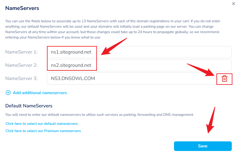 • 如果有额外行可填,没有就删除掉多余的,通常情况下填写两个就行了,但 NameSilo 支持最多 13 个。