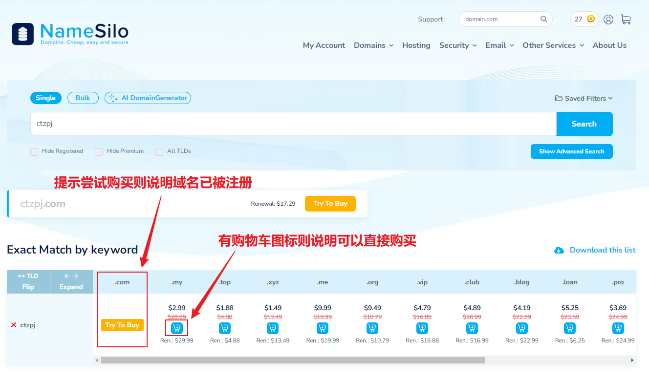 1. 打开官网:点击前往Namesilo官网
