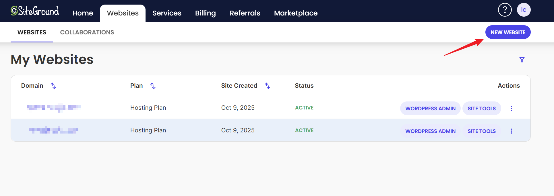 点击顶部菜单中的 “Websites”,然后选择 “New Website” 开始添加新网站。