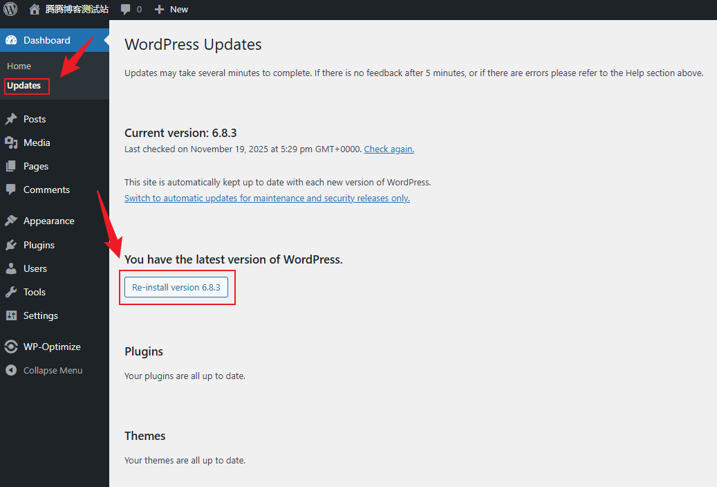 WordPress 会自动下载简体中文语言包并立即切换界面。