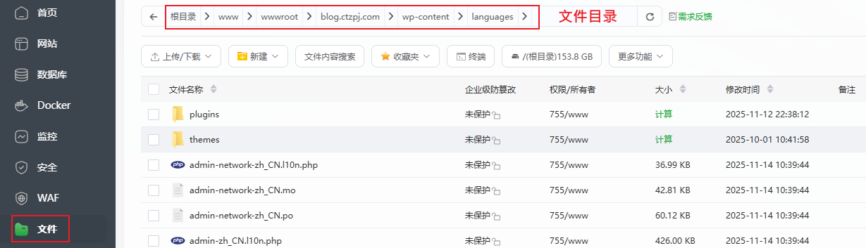 如果重新安装后还是没有,可通过 XFTP工具 、主机的文件管理页、上传语言文件: